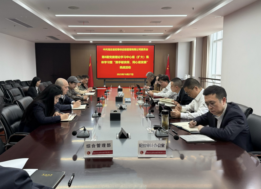 10月27日,宏泰供应链公司开展党委理论学习中心组暨“携手献良策,同心促发展”统战活动专题学习,党委书记、董事长罗瑞主持会议并作主题讲话。