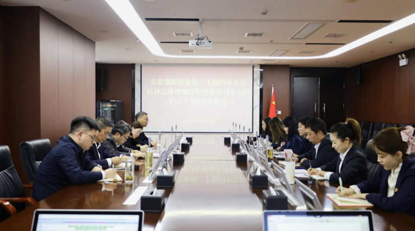 为深入学习贯彻党的二十届四中全会精神,切实把全体党员干部的思想和行动统一到党中央决策部署上来,12月10日,宏泰创新投开展党的二十届四中全会精神集中宣讲暨2025年理论学习中心组(扩大)第8次集体学习,公司党总支书记、董事长邓志坚主持会议,宣讲全会精神。