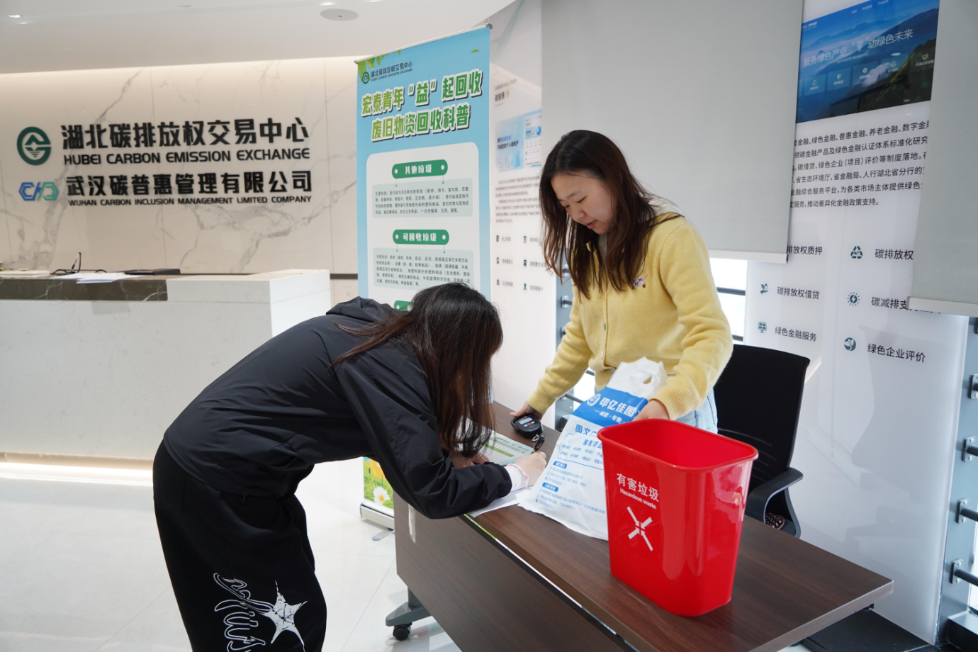 为深入贯彻习近平生态文明思想,践行绿色发展理念,凝聚青年环保合力,3月30日,湖北金控商业保理有限公司团支部与湖北碳排放权交易中心团支部联合举办第二次“宏泰青年‘益’起回收”志愿活动。本次活动以“绿色同行”为核心,在宏泰大厦、中碳登大厦双点位同步开展,进一步扩大环保覆盖范围、创新回收模式,以实际行动彰显宏泰青年的责任担当与国企绿色发展底色。