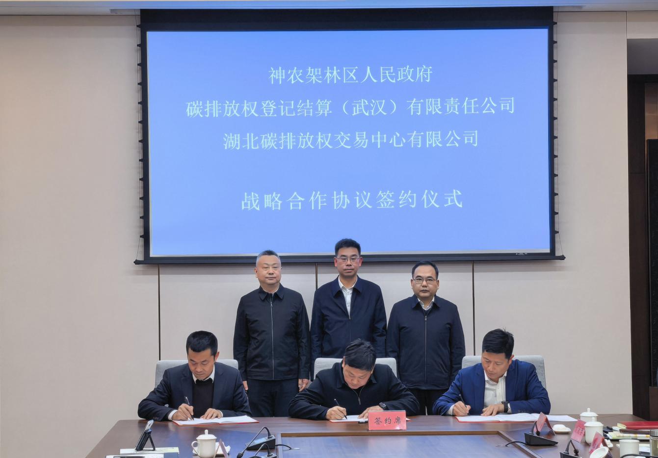 3月18日,中碳登、湖北碳交中心在神农架林区与林区人民政府签署战略合作协议,助力林区打造生态文明建设高地。林区党委书记郑利主持签约仪式,湖北宏泰集团党委委员、副总经理,中碳登党委书记、董事长尹俊,林区党委副书记、政府区长周军出席活动并见证签约。