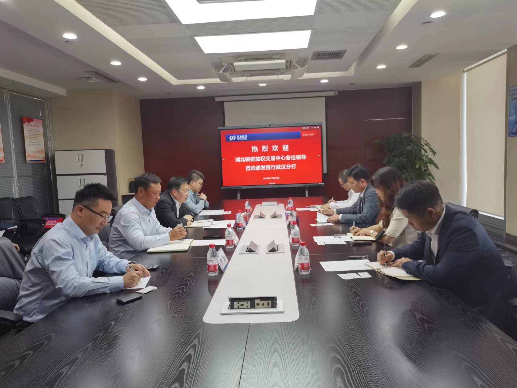 何昌福总经理高度赞赏浦发银行在绿色金融顶层设计、产品体系、配套支持、信贷政策和规模等方面的成效。何昌福总经理介绍,碳交中心近年来取得了诸多改革成效,在碳交易创新、碳减排认证、碳普惠、碳资产管理方面拥有专业优势,同时肩负着湖北省绿色产业项目“鄂绿通”平台建设和维护工作,希望双方未来在碳排放权及排污权融资、绿色融资项目对接、碳减排认证、碳普惠、碳中和银行建设以及“双碳”专业咨询等领域进一步加强合作。