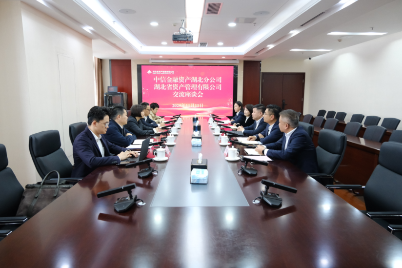 11月11日,湖北省资管公司党委书记、董事长李建军与中信金融资产湖北分公司党委书记、总经理肖艳玲一行座谈交流。双方围绕项目合作、资源共享等事宜进行了深入交流。