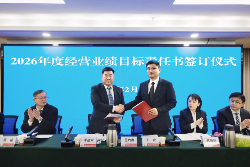 会上,集中传达学习了宏泰集团2026年度工作会议精神,李建军代表公司董事会与经营层签订2026年度经营业绩目标责任书,公司党委委员、执行总经理王欢作经营工作报告,公司党委委员、副总经理何巍主持会议,公司领导班子成员周盛、黄葵丽、桂婷、徐阳、高鹏飞、田伟、田星出席会议。