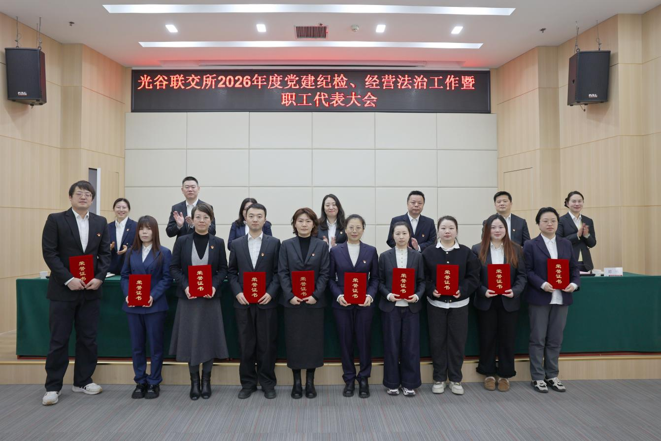 3月20日上午,光谷联交所召开2026年度党建纪检、经营法治工作暨职工代表大会。党委书记、董事长杨静出席会议并讲话,党委副书记、总经理郑昀辉主持会议,并作经营工作报告,分管党建、纪检、法治的领导分别作年度工作报告。