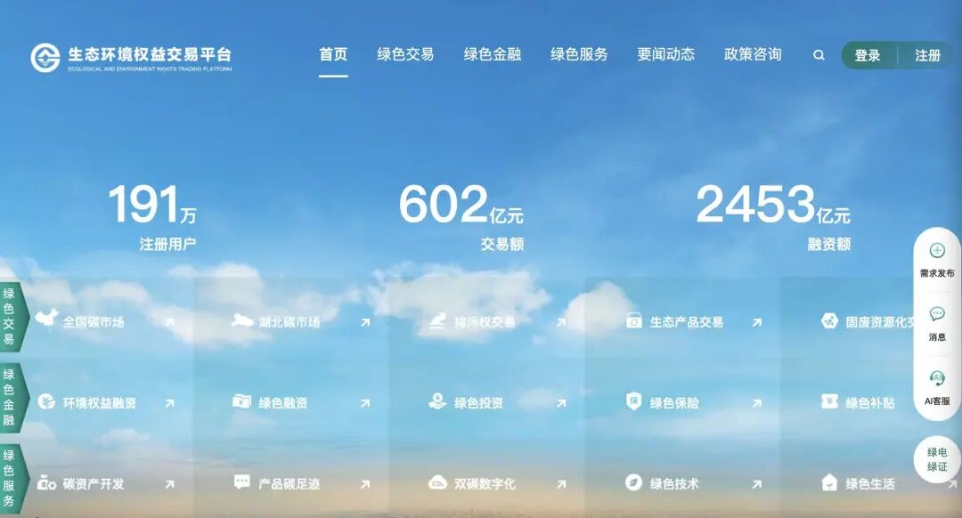目前,湖北生态环境权益交易平台主要具备绿色交易、绿色金融和绿色服务三大板块15项具体功能。平台最引人注目的首创性突破在于,它建立了全国首个规范的生态产品价值实现交易模块。打破传统单一品种交易模式,整合了碳排放权、排污权、生态产品、固废资源、绿色金融五大功能,为企业提供“一站式”绿色转型方案。通过科学核算给清新的空气、洁净的水源、丰富的碳汇、优美的景观“明码标价”,让许多“养在深闺人未识”的生态宝藏,转化为可交易的“活资产”。同时通过“淘宝+广交会”的创新模式,线上便捷交易,线下精准撮合。